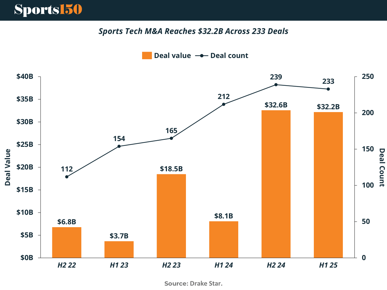 Sports Tech just posted a $32.2B half and 233 deals, keeping infrastructure teams busy building “end-to-end everything.” The fitness stack is rolling up fast: TSG’s $1.5B buy of EōS Fitness mirrors other HVLP moves, signaling a land-grab for recurring revenue. In media, Disney’s majority stake in FuboTV plus a fusion with Hulu + Live TV creates a distribution giant—bad news for standalone streamers. Youth sports software is quietly becoming a platform play, with Genstar–PlayMetrics–Stack Sports forming a category leader and IMG Academy adding SportsRecruits to tighten its athlete-development loop. And in event infrastructure, Valeas’ $110M deal for TicketManager adds muscle to enterprise ticketing. The through-line: buyers want platform density across the fan-to-athlete lifecycle. (More)