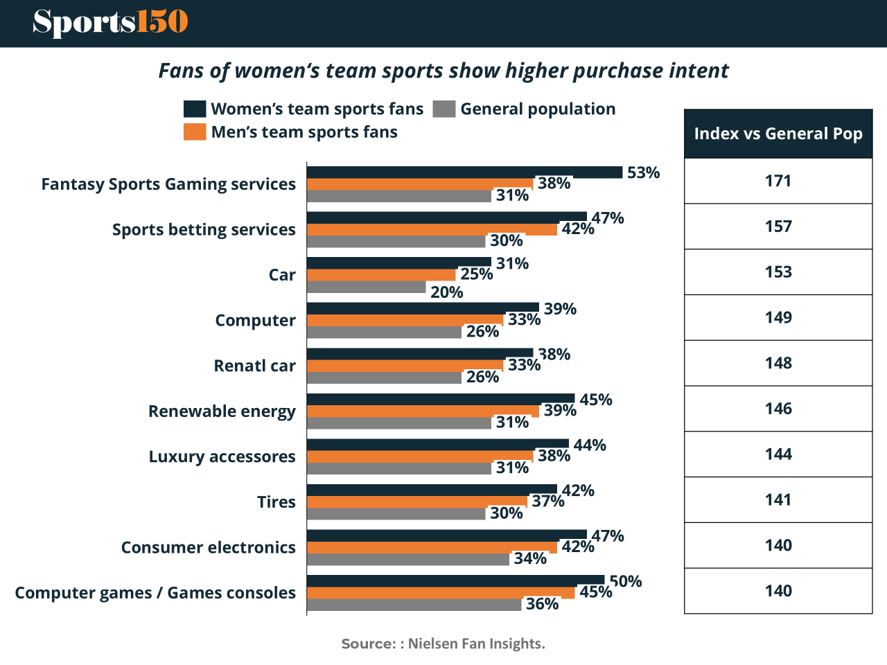 The message is clear: fans of women’s team sports represent one of the most commercially valuable audiences in the sports ecosystem. They are more engaged, more loyal, and more willing to reward the brands that invest in their favorite leagues and teams. For sponsors, this creates an opportunity not only to reach a growing and increasingly female audience, but also to drive measurable ROI across a wide spectrum of consumer categories—from gaming and electronics to luxury goods and renewable energy.
